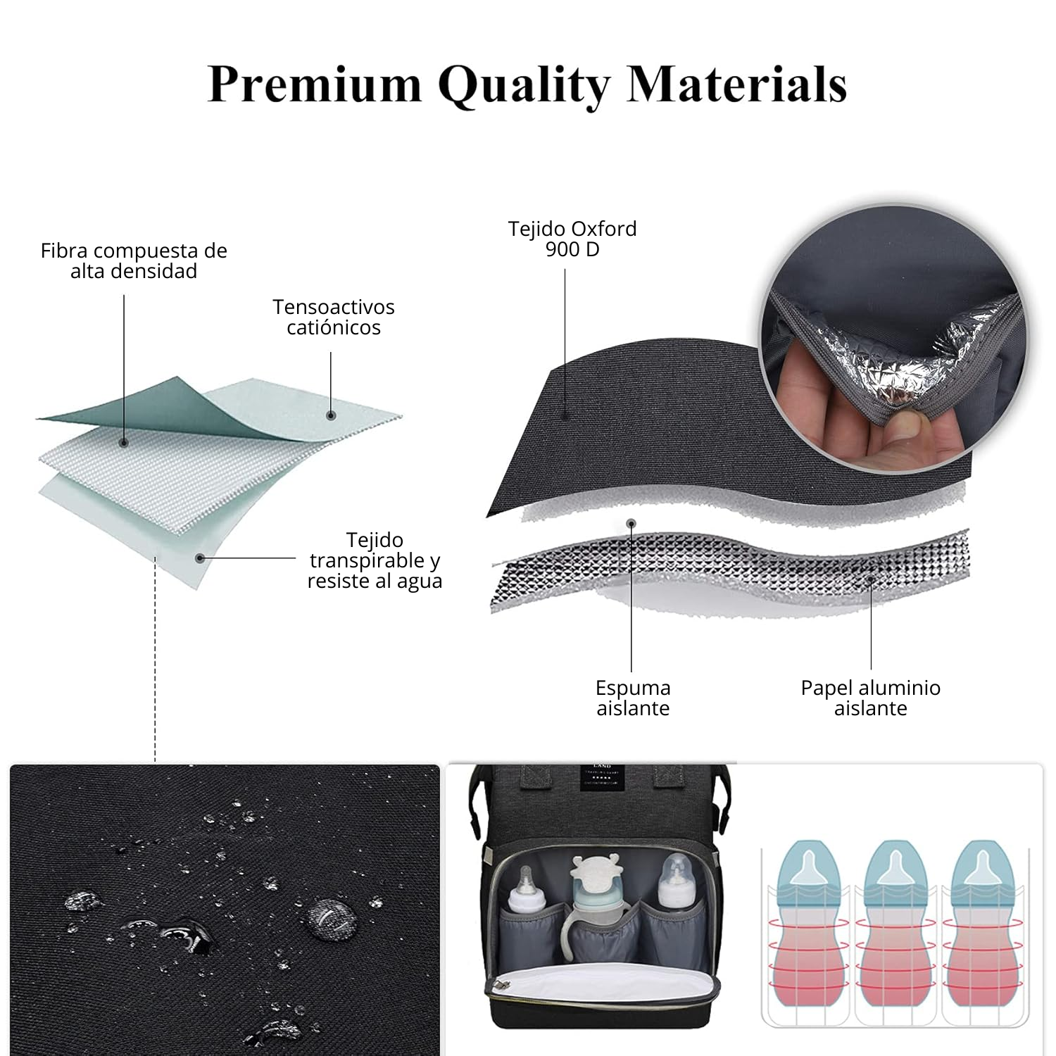 Máxima Capacidad y Organización: Espacio interno XL para pañales, ropa y leche, además de bolsillos térmicos para biberones que mantienen la temperatura ideal.